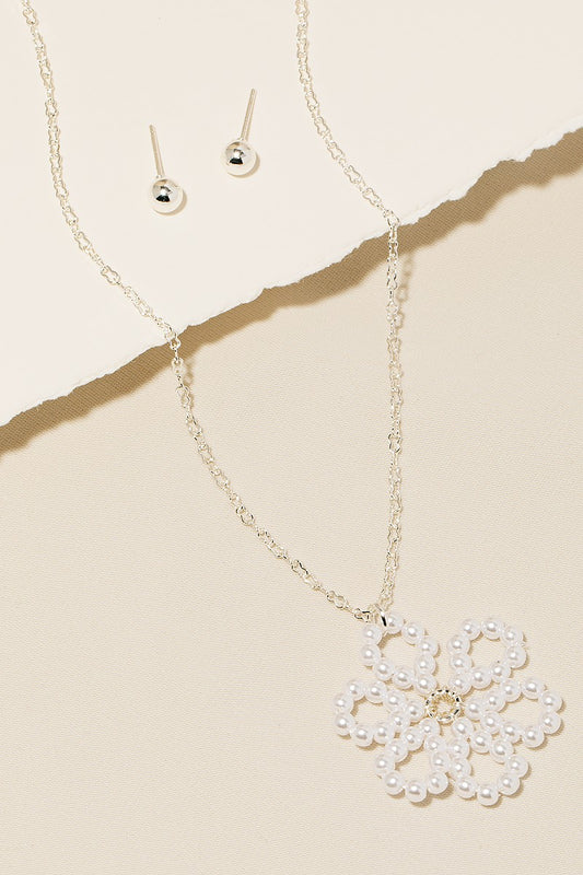 Pearl Beaded Flower Necklace