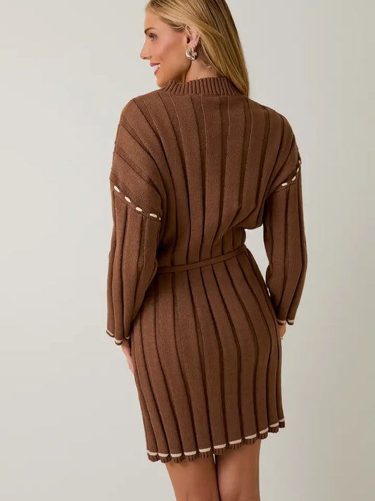 3/4 Sleeve Stitch Detail Sweater Dress