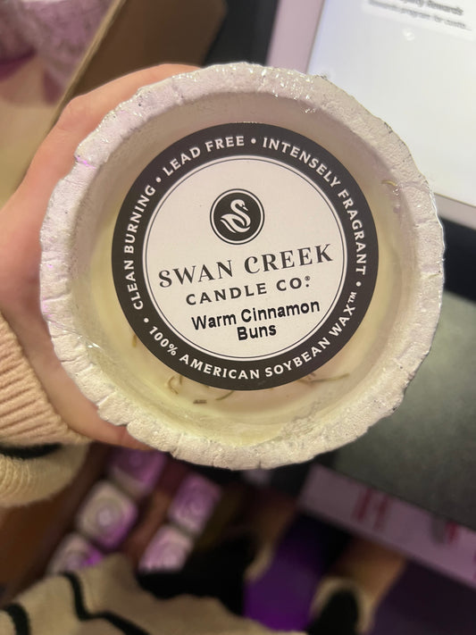 Swan Creek Candles - White Woods Small Round Pot - Warm Cinnamon BunsRegular price $18.00 USDRegular priceUnit price per-