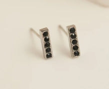 Waterproof Jewelry - Gem Bar Studs - Black/Silver