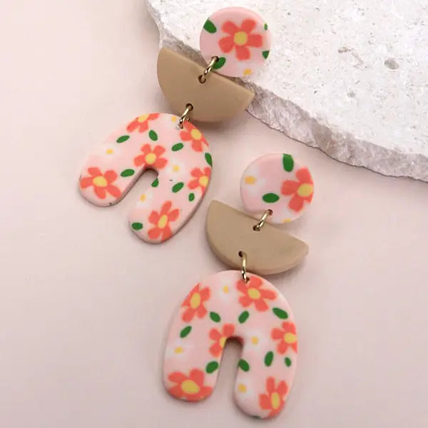 Flower Drop Arch Earrings - Peach