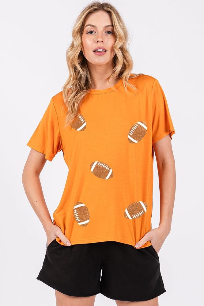 GLITTER FOOTBALL TEE - ORANGE