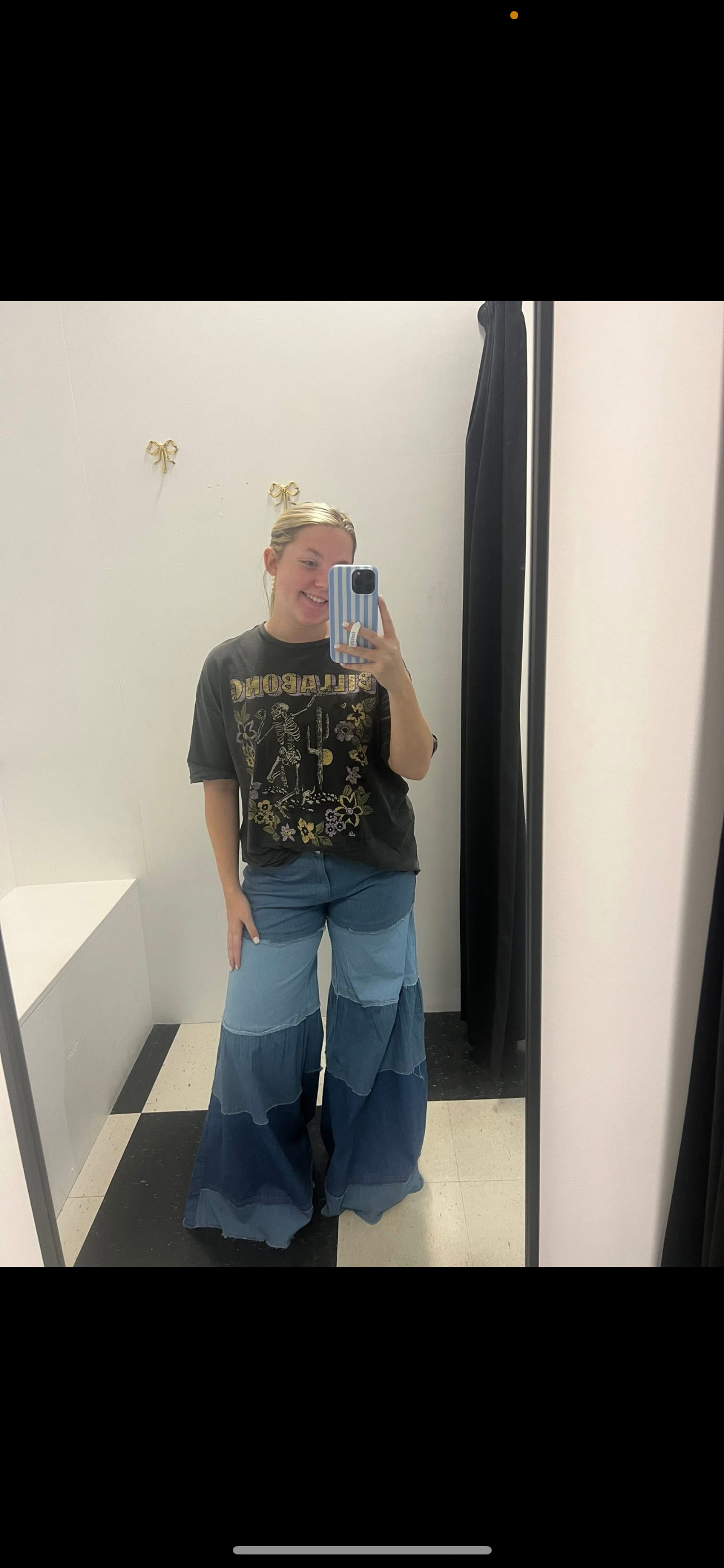 PLAYFUL AND COMFORTABLE, THESE RUFFLE LAYERED DENIM PANTS FEATURE A SOFT, STRETCHY WAISTBAND FOR AN EASY, FLEXIBLE FIT. THE TIERED RUFFLE DETAILING ADDS A FLIRTY, FUN VIBE, WHILE THE CLASSIC DENIM FABRIC KEEPS THEM VERSATILE FOR EVERYDAY STYLING. PERFECT FOR PAIRING WITH FUN GRAPHIC TEES OR BASICS.