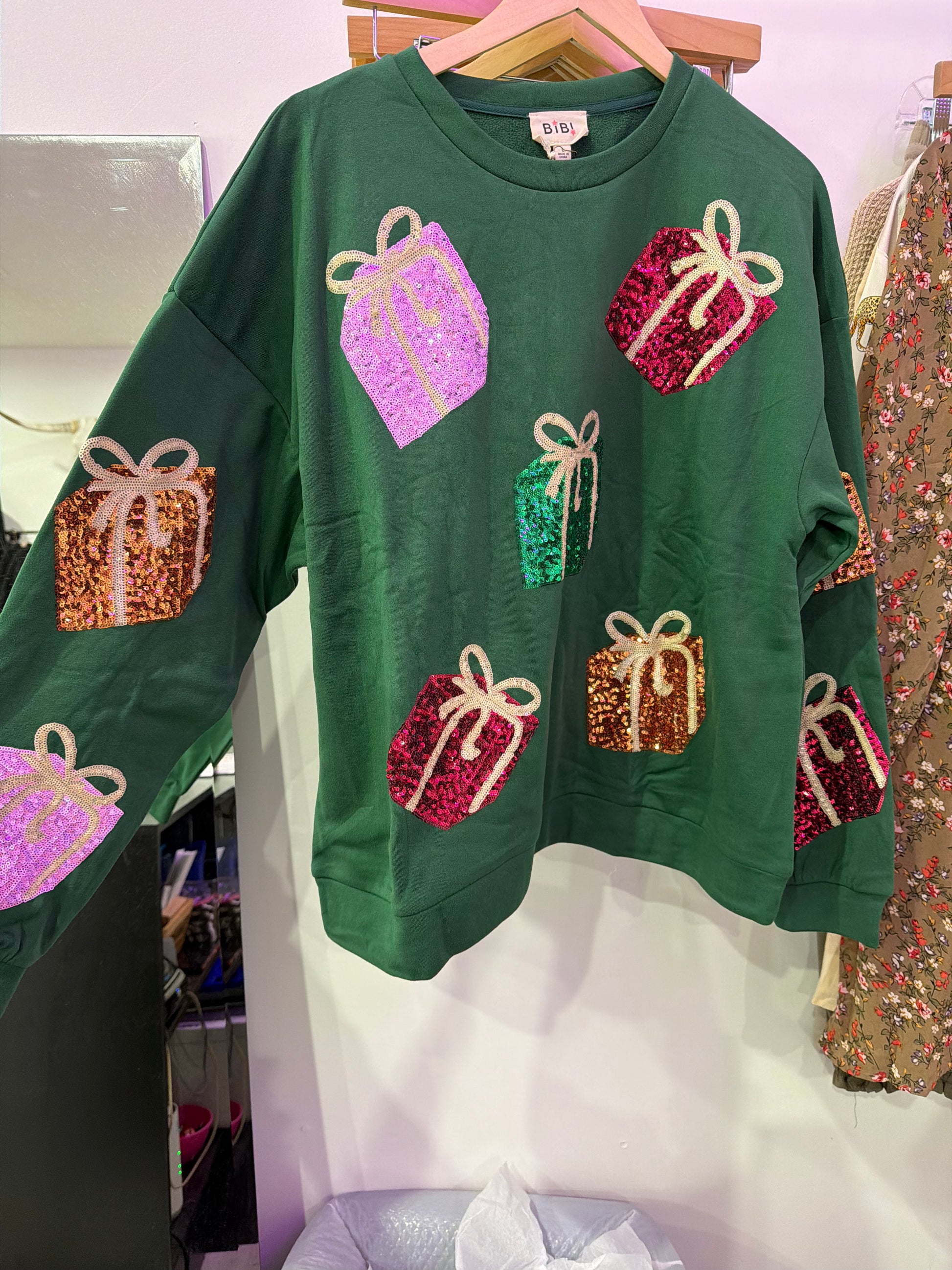 Sequin Present Fleece Pullover