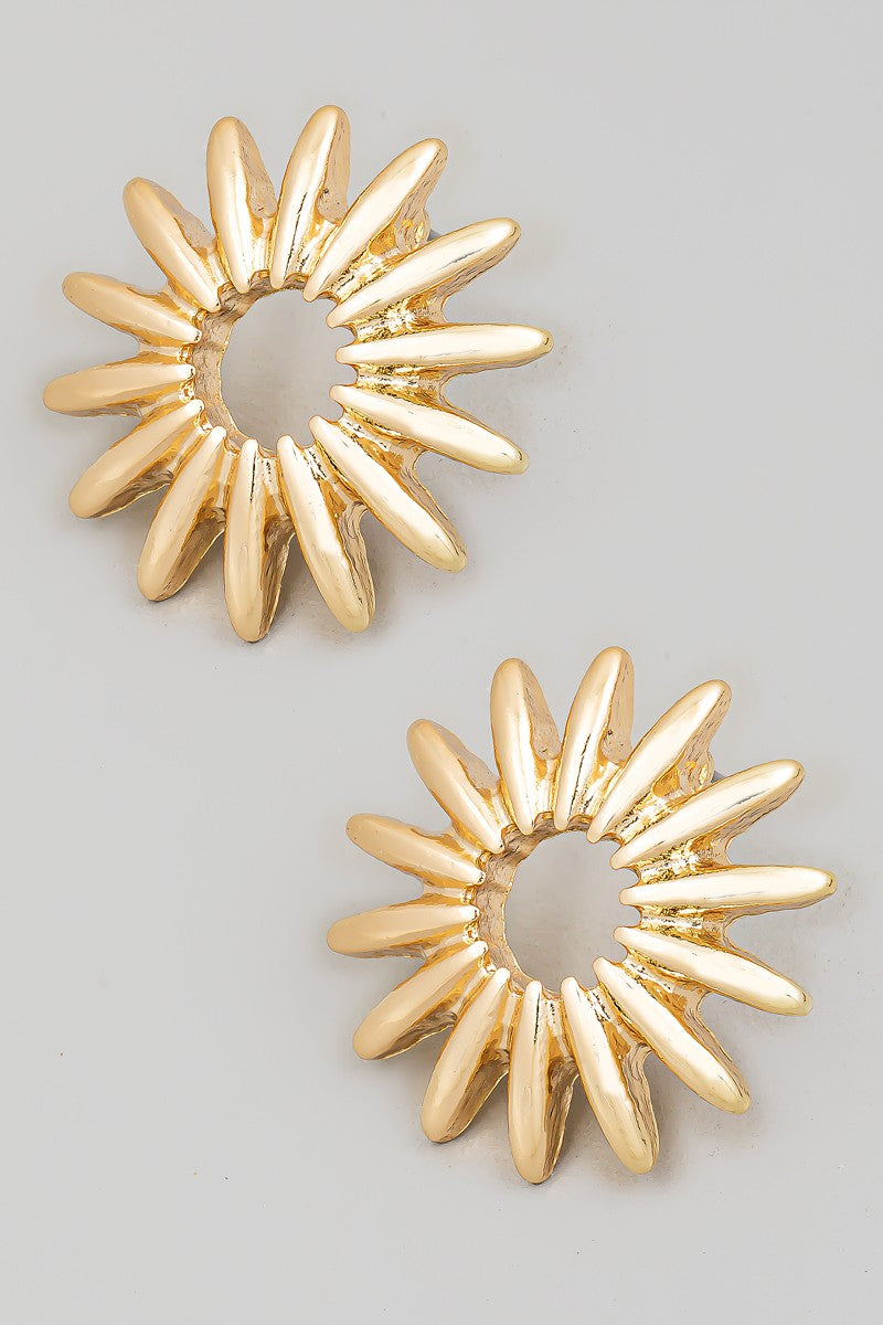 This pair of stud earrings introduces a unique metallic sunshine hoop style. Celebrate individual style with this versatile, eye-catching addition. 100% METAL